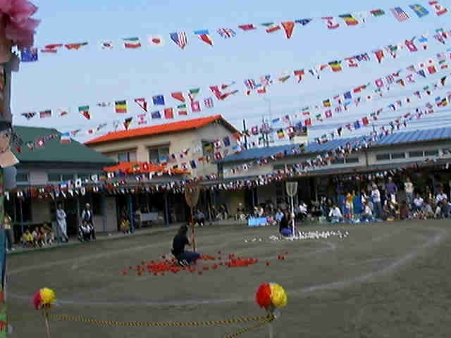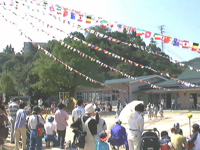 97年10月5日、娘の通っている泉幼稚園の運動会が開かれた。 運動会などは、高校を卒業後は暫く縁の無いものであった。 これからは自分の娘の運動会に出ることになるのか・・・。 運動会といっても、幼稚園の小さな園庭でのお遊戯が主であり、朝10時から昼の休憩を入れても、1時半には終了した。 今回は、父としてはビデオカメラマンに徹したが、いずれ競技に出なければならなくなるだろう。