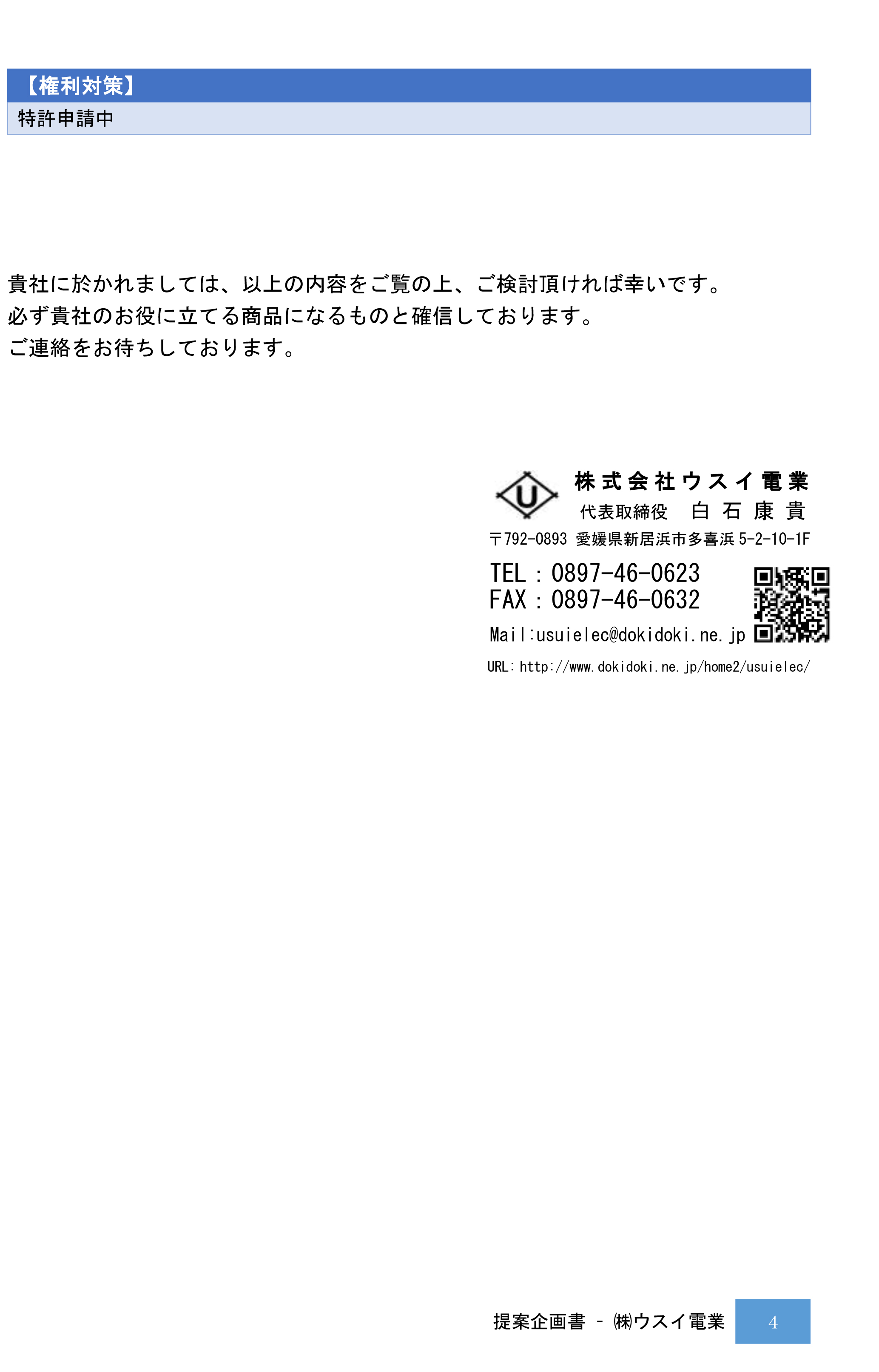 | 新 規 性 3 | 故障が少なく、据え置き方式のため大掛かりな工事も不要!設置コストもお安い! |