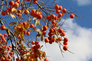 | 隣接園の渋柿がたわわに実を付けています。柿も豊作のようですね。毎年分けてもらって吊るし柿にしていますが、今年も、正月用の吊るし柿にしようと思います。小玉ですが美味しい吊るし柿になるでしょう。 ![]() |