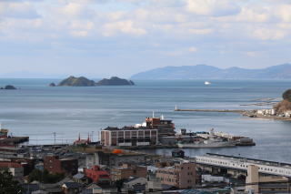 | 青空がのぞく元日。穏やかな宇和海。航跡を残し八幡浜港を出航して九州へ向かうフェリーが見えました。ウォーキングをかねて、近くにある石鎚神社へ二人で初詣。新年が平和で佳い年であることなどを祈念しました。 ![]() |