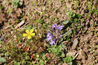 | みかん山にも春の草花が咲いています。小さい花(黄色い花はカタバミ、紫色の花はキランソウ)ですが、春の陽光を受けて、花びらを広げ、笑いかけているように見えました。 ![]() |