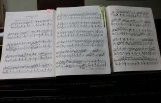 先生に新年の挨拶をした後、「ドホナーニ」、「チェルニーリトルピアニスト」、「ブルグミュラー25の練習曲」の三冊の教本のそれぞれの課題曲を弾き、先生から練習のポイントなどを指導していただきました。気持ちを改め、今年も、一曲、一曲のエチュードの狙いを丁寧にマスターしていきたいと思います。 ![]() |