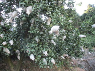 鳥害さえなければ 包まなくて良いのですが 来年の2月・3月には鳥が食べに来ます。