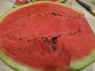 やはり とても とても美味。生まれて数十年毎年スイカは食べているのに こんな甘味のある品種は食べたことが無いです。種を取って保存しましょう。 |