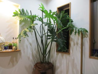 水やりに失敗すると 葉が2本位しか無くなる時もありますが 外に出してほったらかしにしていたら又回復します。観葉植物は忘れた頃に水与えるのが丁度良い位です。購入して10年は我が家の玄関に鎮座しています。 |