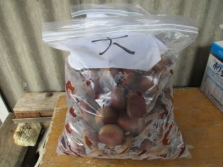 拾ったまま袋にいれてあるので 1個ずつタオルで拭いて虫食い等除きます。 |