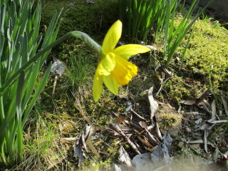 今日の我が家の食卓は黄色のラッパスイセンです。