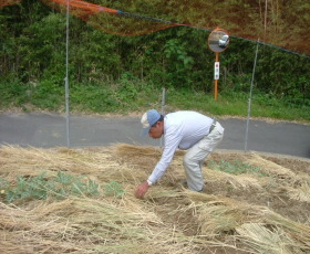 | 5月29日 火曜日 晴れ 藁を敷く |