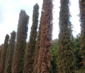 | 去年の台風で倒れてしまった杉の木。我が家では暴風垣に利用していました。みかんの為にはぜひ必要な木です。今日は森林組合に注文してあった苗が来ましたので早速植える事にしました。 |