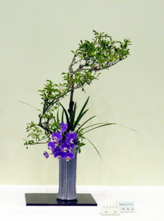 池坊東予支所の作品をご紹介します。左は立花正風体、右は立花新風体です。