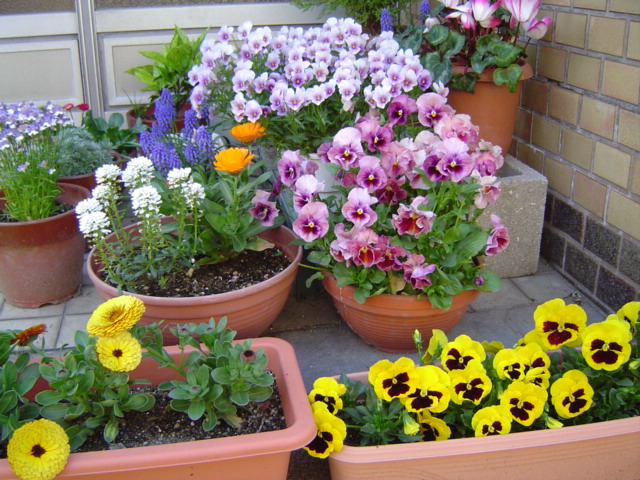 ムスカリとパンジー