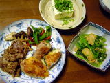 小松菜とほうれん草、揚げの胡麻和え、冷や奴 |