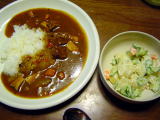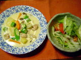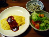 | 具タップリの特製オムライス。 茎わかめの胡麻味噌マヨネーズ和え、野菜サラダ |