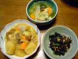 | イカのマリネ | 肉じゃが、五目ひじき、 鶏肉団子のキャベツスープ |