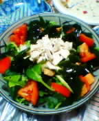 キュウリと茎わかめと ちりめんじゃこの酢の物 |