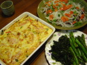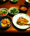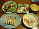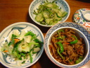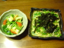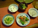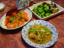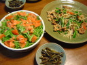 | 水菜とスモークサーモンのサラダ 豚肉ともやしとニラの 中華炒め |