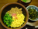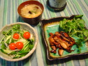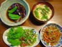 茄子の煮浸し きんぴら、鰹のたたき、かき玉汁 |