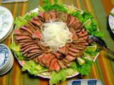 | 牛肉のたたき | キッシュ | あぶらめと鯛と海老の カルパッチョ |