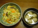 茸のおすましにスダチ、 もやしと椎茸の炒め物 |