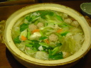 肉団子スープ | 茄子のコチジャン炒め 塩鯖、ポテトサラダ、 揚げ出し豆 |