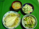 メダカガレイの煮付け 白菜と椎茸と揚げの煮浸し、マカロニサラダ、 サツマイモのみそ汁 |