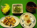 ハモの蒲焼き 春菊の胡麻和え、 ふろふき大根の葱ミソ |